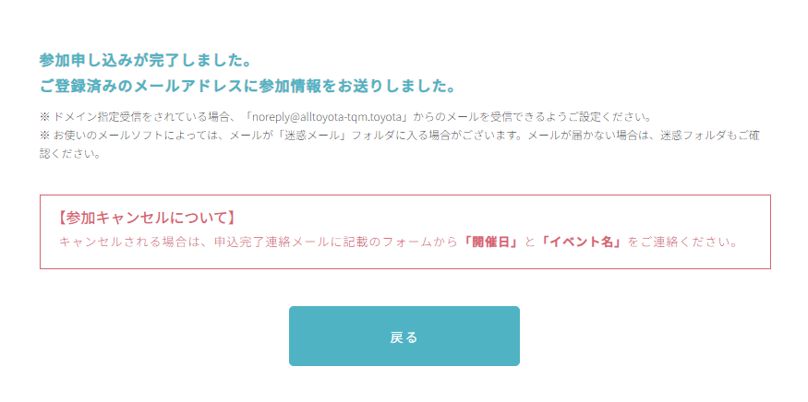 - 次の画面が表示されたら申し込み完了です。ご登録いただいているメールアドレス宛に、申し込み受付完了のメールをお送りします。