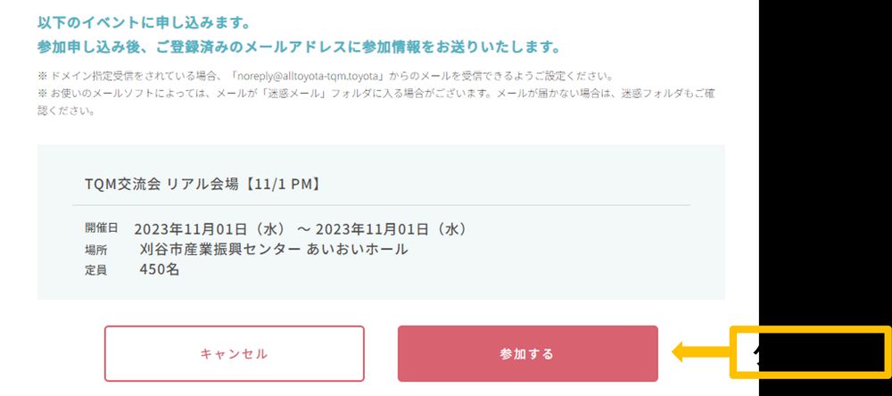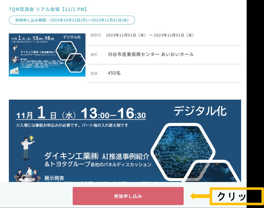 - イベントをクリックして詳細ページを開き、「参加申し込み」ボタンをクリックしてください。