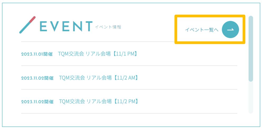 - 「イベント一覧へ」をクリックしていただくと、現在予定しているイベントの一覧を確認いただけます。