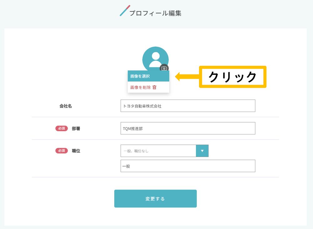 - プロフィール編集画面にて、会社名、部署、職位が変更可能です。