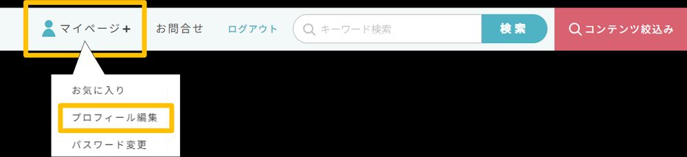 - サイト上部の「マイページ」→「プロフィール編集」をクリックすると、プロフィール編集画面が表示されます。