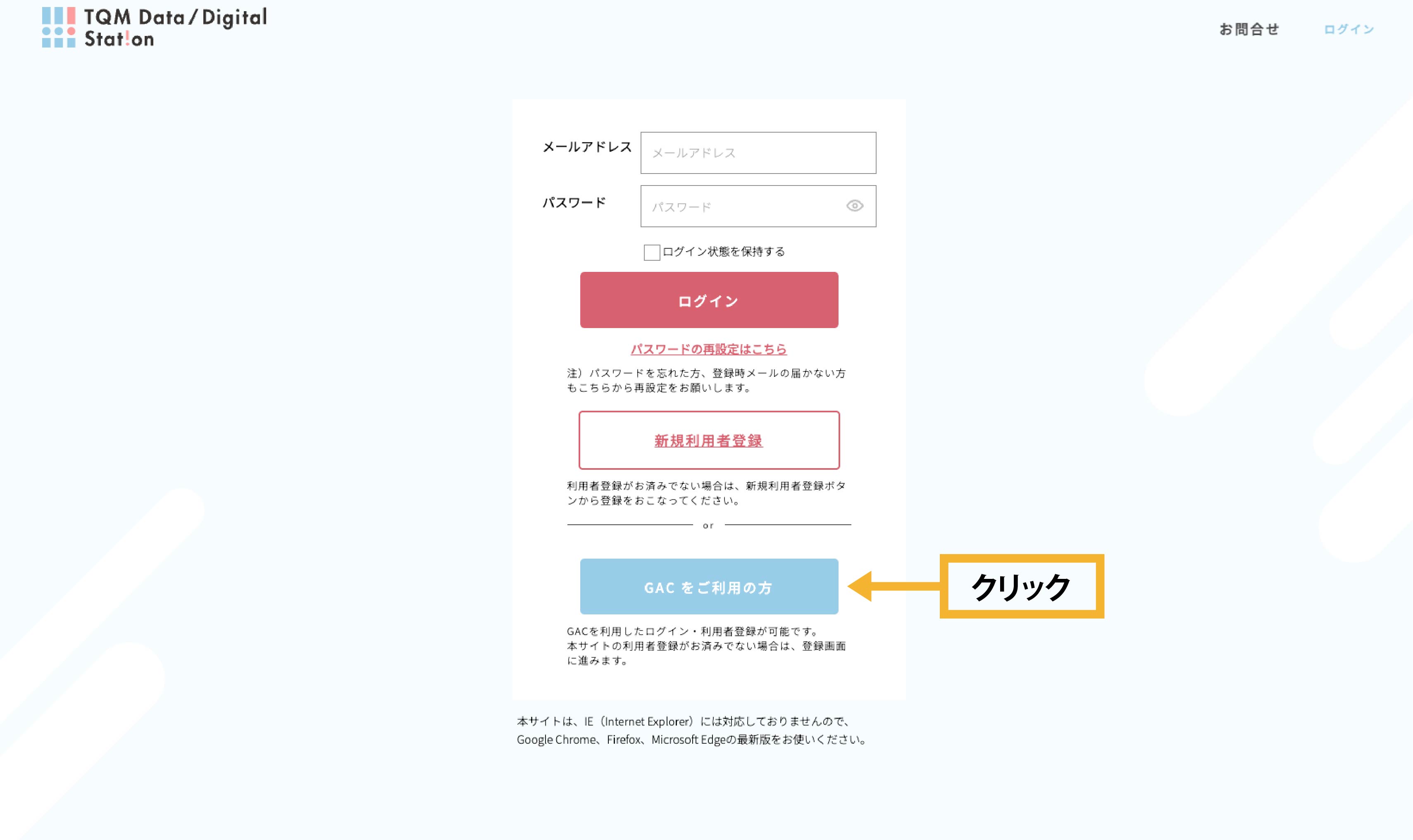 - ログインページ にアクセスし 、GACをご利用の方ボタンをクリックしてください。