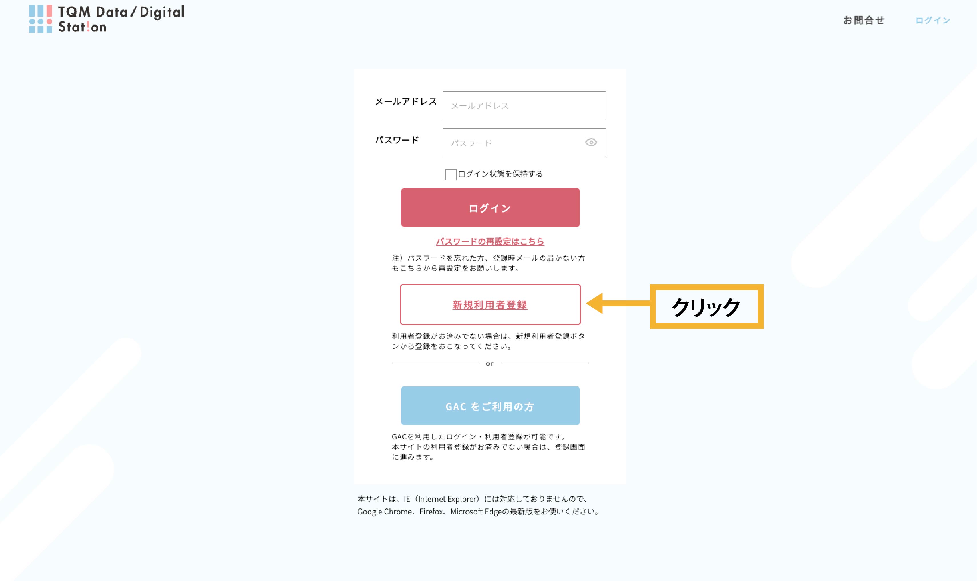 - ログインページ にアクセスし 、新規利用者登録ボタンをクリックしてください。